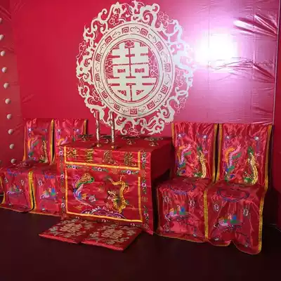 Wedding supplies Chinese wedding worship hall into a pro background props table and chair cloth dragon and phoenix Chengxiang double joy embroidery table chair cover
