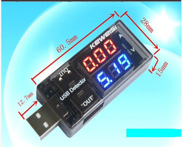 USB current voltage tester USB voltage current meter USB current voltage tester double table display