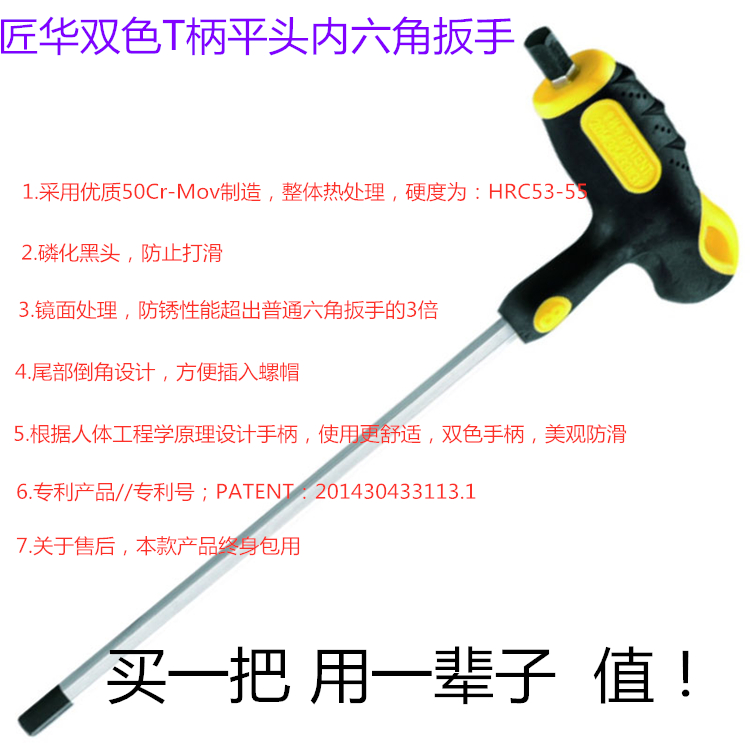 Craftsman Hua hexagonal t-type labor-saving flat head Allen wrench screwdriver T handle two-color chrome vanadium steel 2-10mm