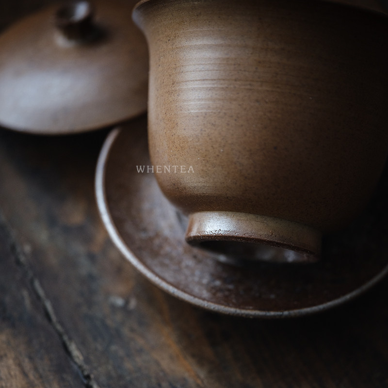 (Solitary Taster) pure chai burning dragon kiln fired three-only cover bowl pure handmade rula