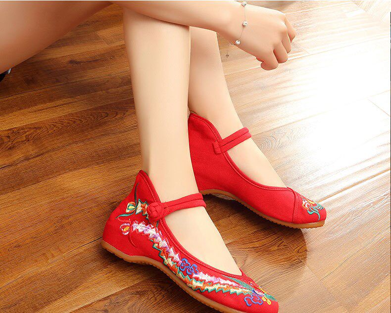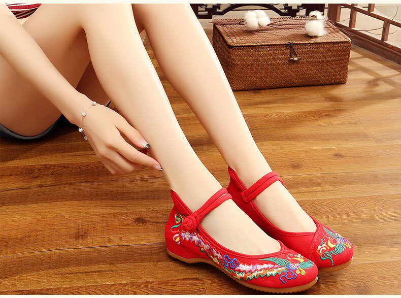 Mom shoes summer colorful phoenix upgrade thickened beef tendon flat embroidered cloth shoes wedding shoes national square dance red peony