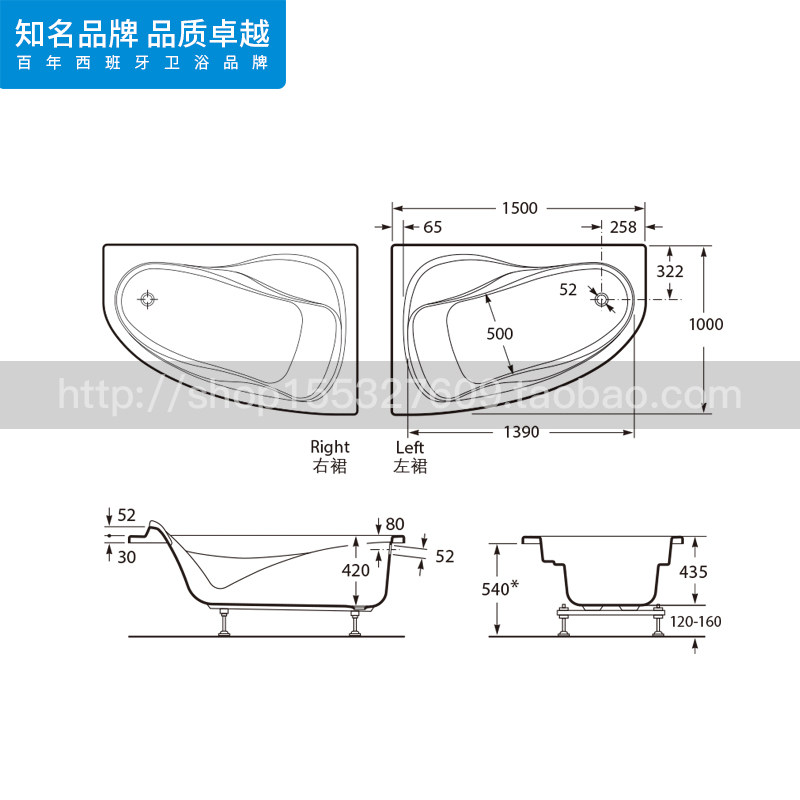 Bathtub 1500x1000 left angle type bathtub 1500x1000 right angle type