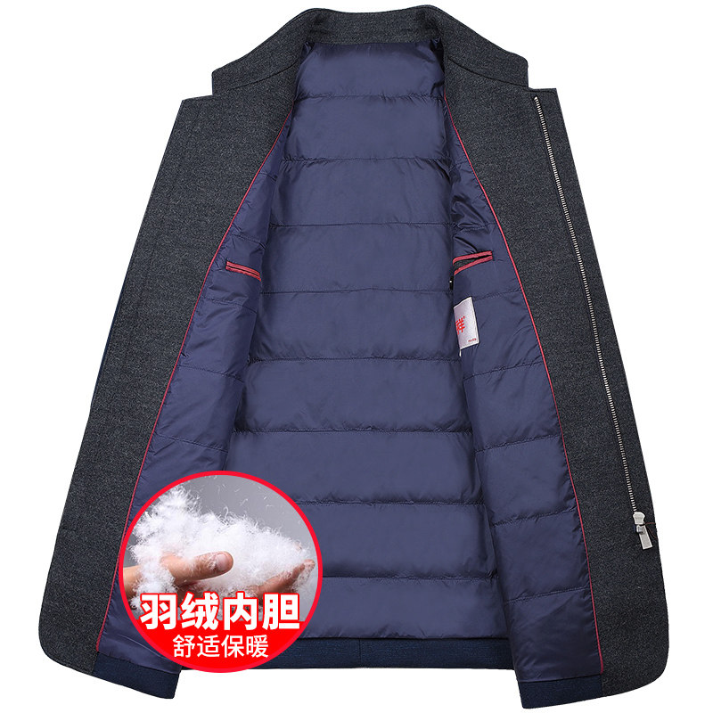 Hengyuan Xiang Duvet Clothing Men's Wool, Great Coat Standing Collar Winter Dress New Year Red Ben Year Middle-aged Pike Jacket Man