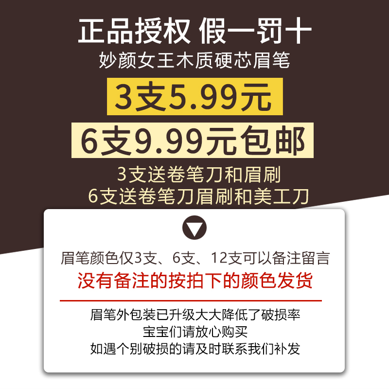 Inexplicable Queen's brow persistent waterproof without decolouration perspiration without fainting hardcore Knife Sharpened Old Wood Pencil-Taobao