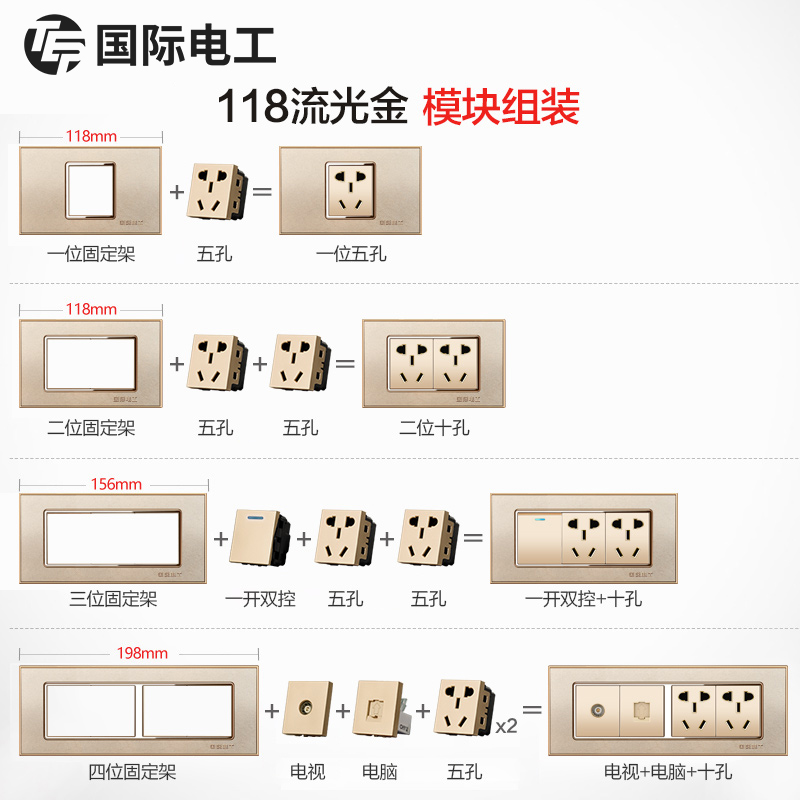 International Electrician 118 Type Household Wall Switch Socket Panel Power Supply 3D Frosted Gold One-Digit Telephone Socket