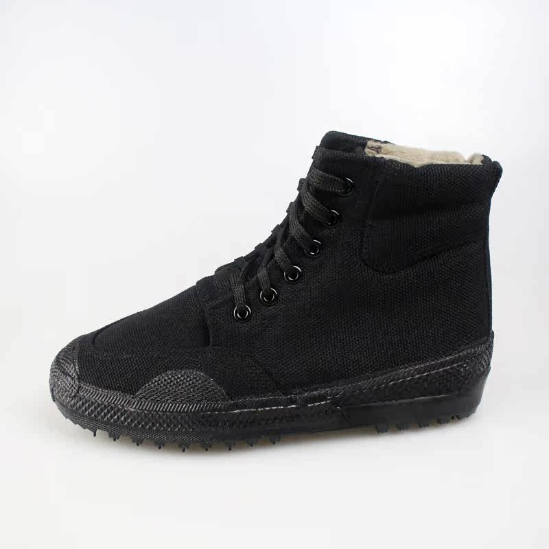 Emancipation Shoes Men's High Cylinder Black Cotton Shoes Winter For Training Plus Suede Thickening Work Camouflate Laobao Cotton Military Training Rubber Shoes