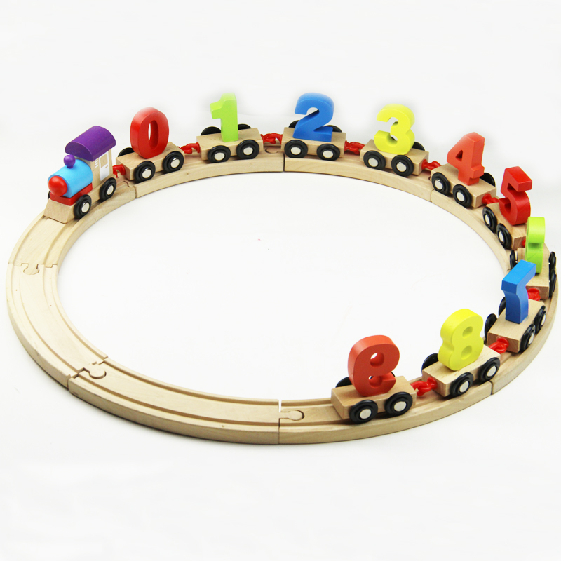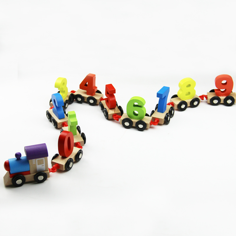 Young children wooden digital small train male girls early education Puzzle Assembled Wooden Track Building Blocks Car Drag toys