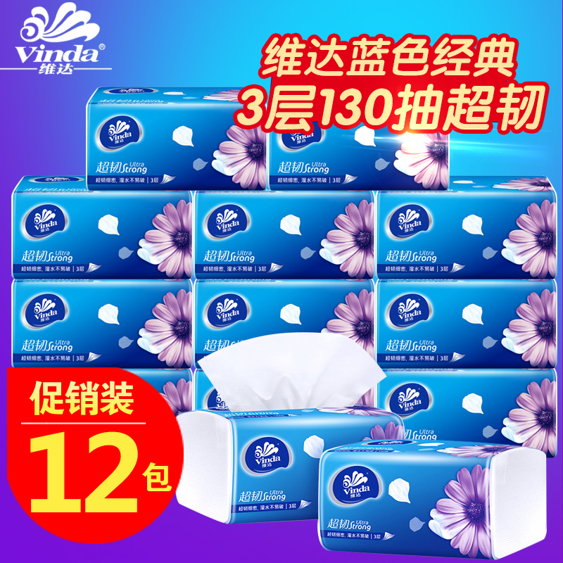 Vida extract toilet paper household 3 layers 130 draw 12 packs of family pack napkins baby napkin toilet paper pumping