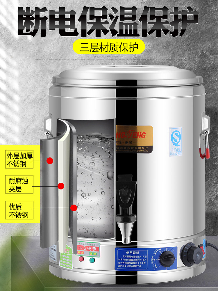 Stainless steel electric heating bucket commercial double-layer large-capacity cooking bucket boiling high pot double-layer insulation bucket water heater - Taobao