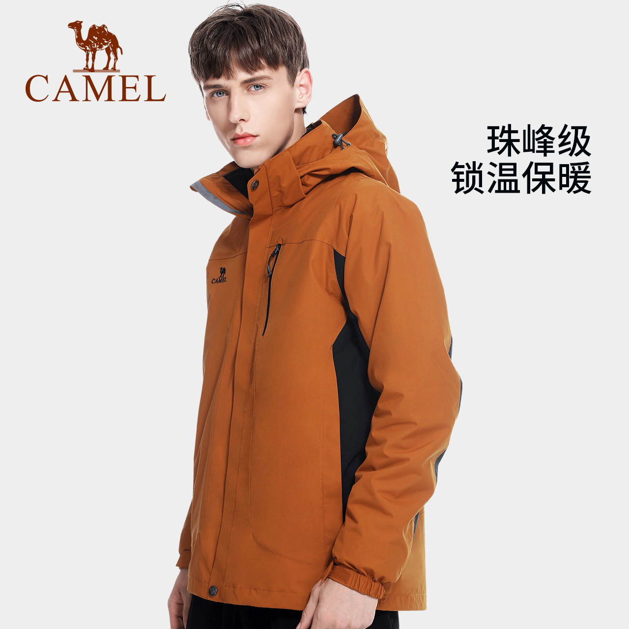 Camel outdoor jacket for men and women three-in-one two-piece set detachable thickened autumn and winter windproof and waterproof mountaineering suit for men