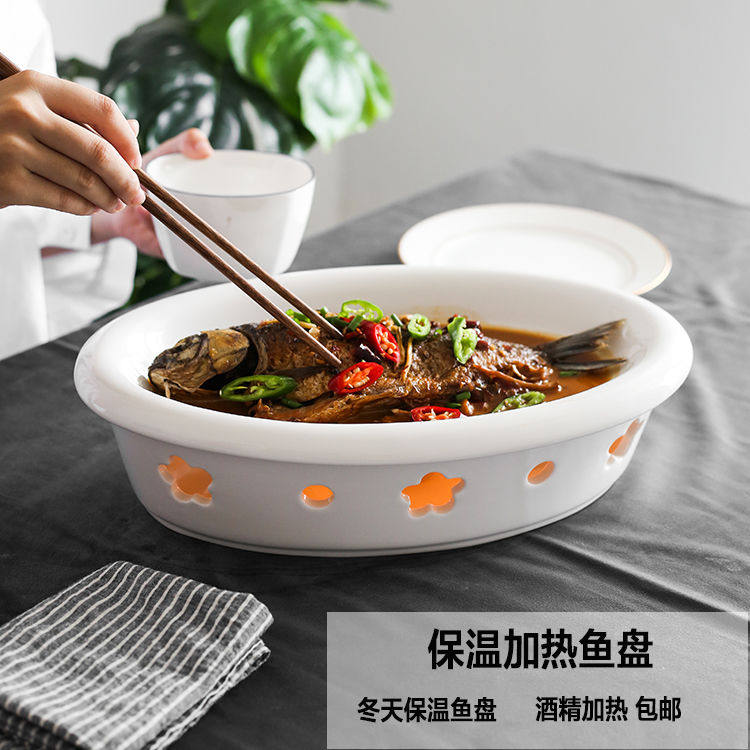 Ceramic Alcohol Candle Heating Furnace Hotel Cutlery Ceramic Insulated Pan Candle Heated Fish Pan Heating Ceramic Min Furnace