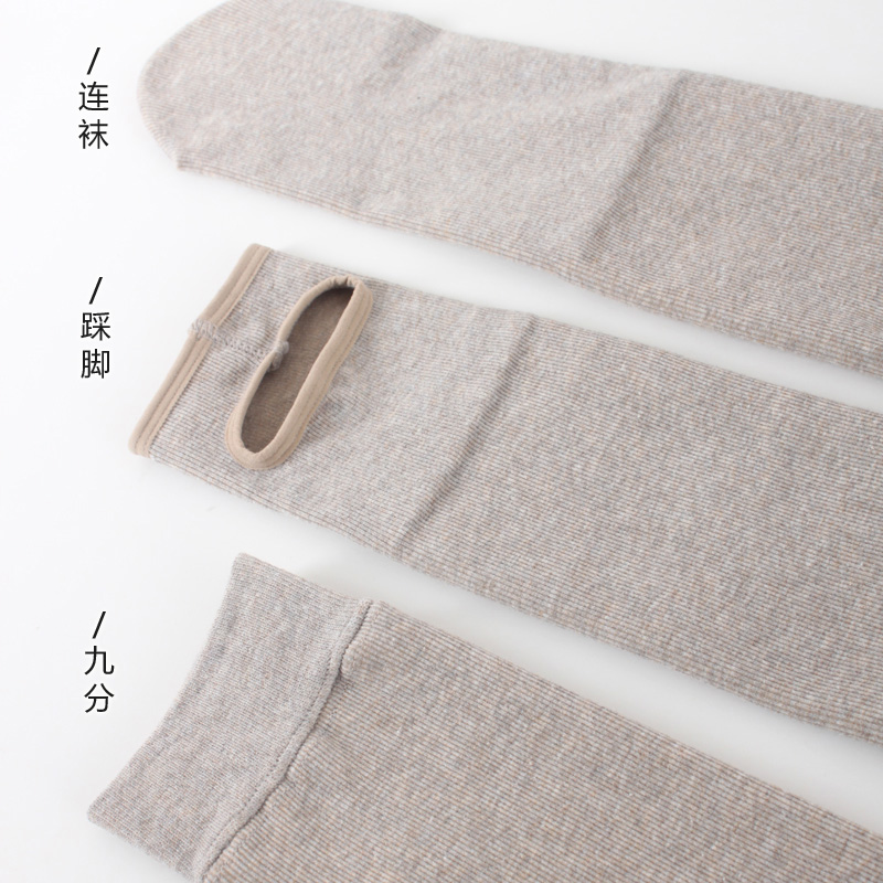 Vertical Stripes Thickened Inner Lap Pants With Feet Autumn Winter Lady Gush Even Pantyhose Day Tying Feet Outside Wearing Warm Cotton Pants
