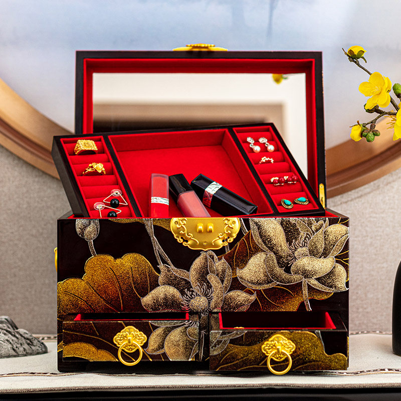 Yonglong push light lacquer wooden jewelry box makeup box Jewelry storage box Jewelry box Jewelry box Jewelry box Wedding gift