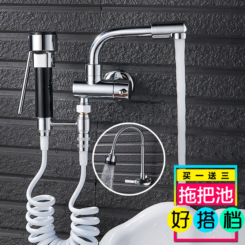 Mop pool faucet lengthened rotating into the wall dual-use single hot and cold all copper laundry pool balcony washing machine faucet