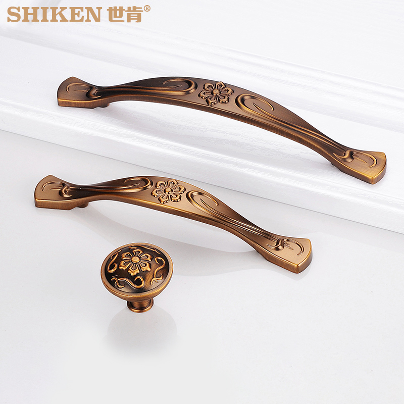 Yellow Ancient Bronze Wardrobe Door Handle Eurostyle Antique Drawers Single-Hole Bed Head Cabinet Whole Closet Cupboard Furniture hardware handle American