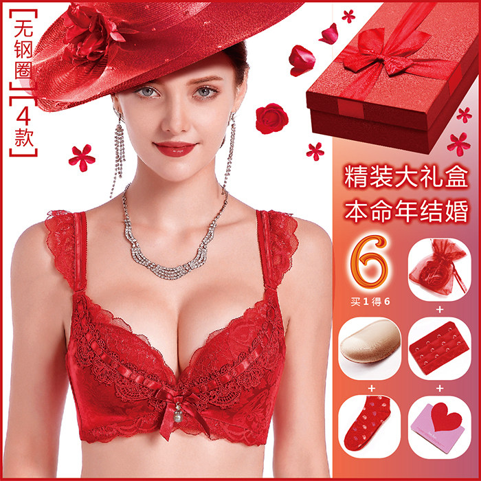 This Life Underwear Suit No Steel Ring Red Bridal Wedding Sexy Poly Lace Adjusted Type of Breast Milk Bra