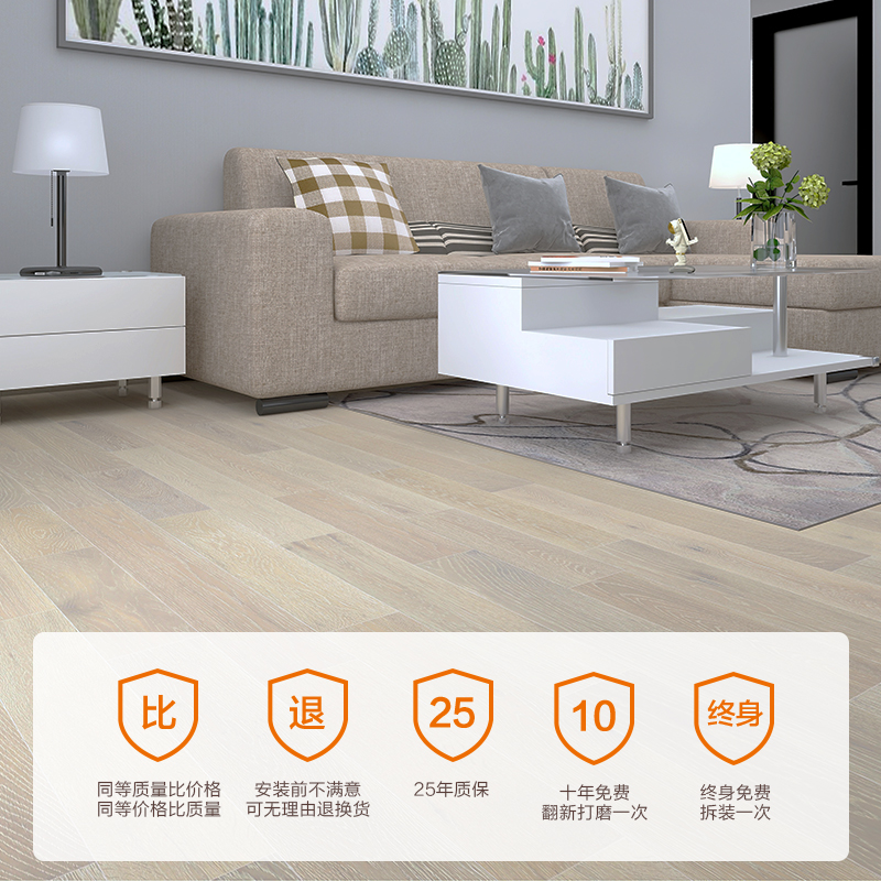 Tiange ground heating solid wood floor ground-resistant hot oak pure log flat wire drawing lock installation CASA Casa
