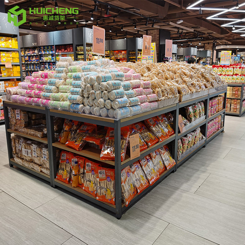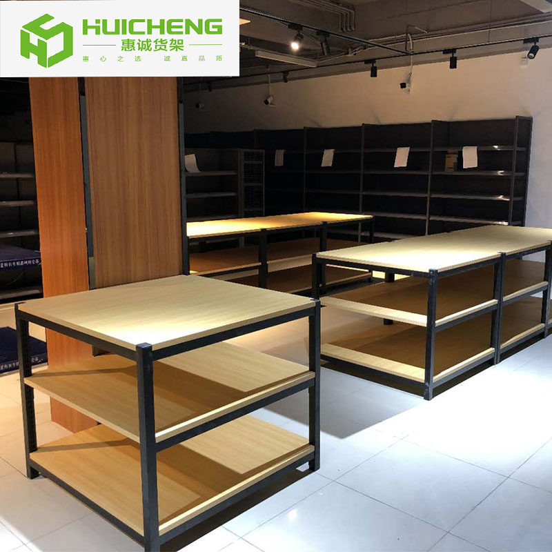 Convenience store supermarket steel wood promotion table multi-functional display frame wooden float shelves promotional heap