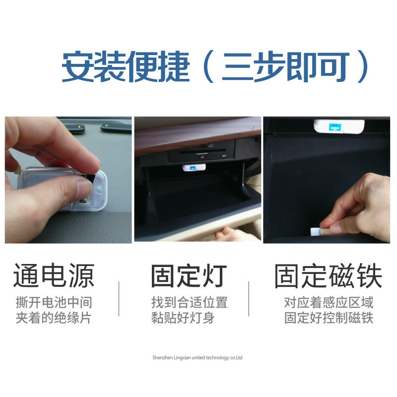 Add glove box light (universal magnetic control automatic for all cars) with three batteries