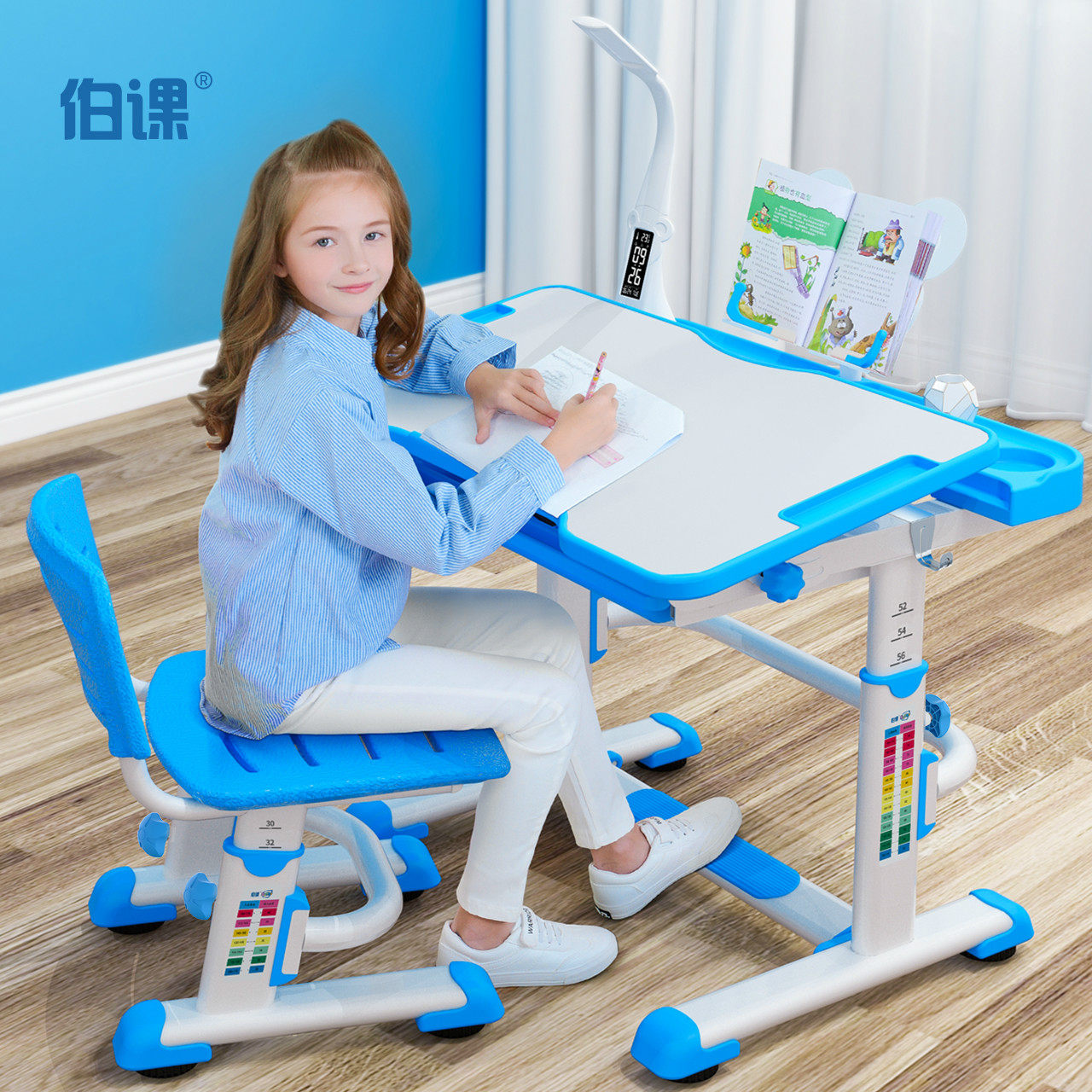Hand-cranked flagship blue hand lift-forward pedal-cute bear bookshelf-lithium battery LCD lamp (children's environmentally friendly material • High-quality thickened carbon rigid • thickened and durable) Cultivate healthy sitting posture and good habit