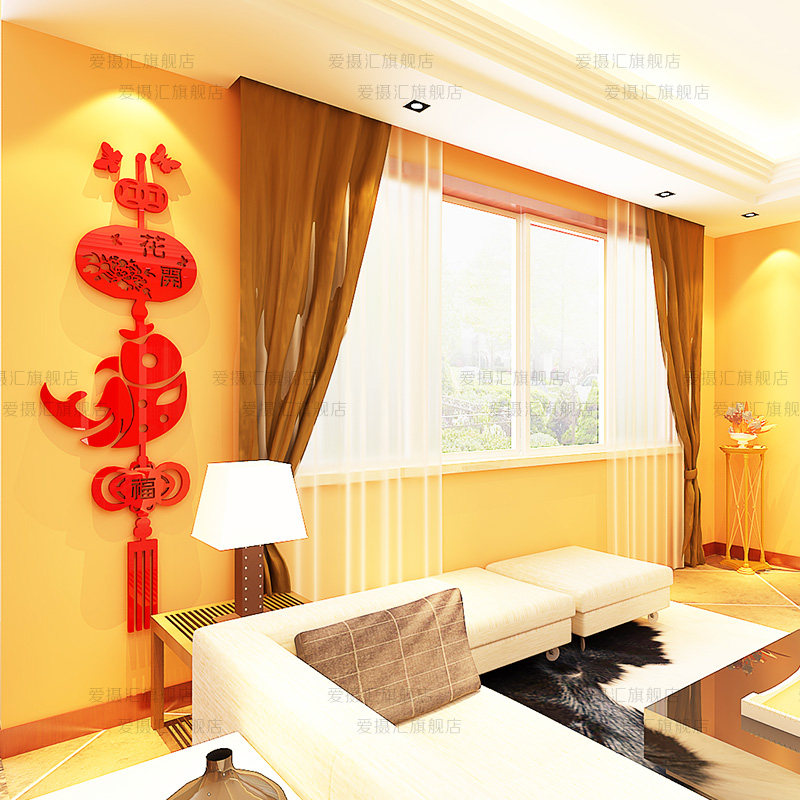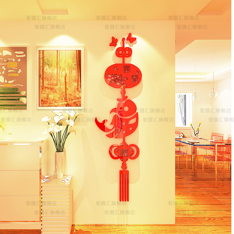Fu word fish New Year Chinese style 3d three-dimensional acrylic wall stickers porch dining room TV background wall decoration arrangement