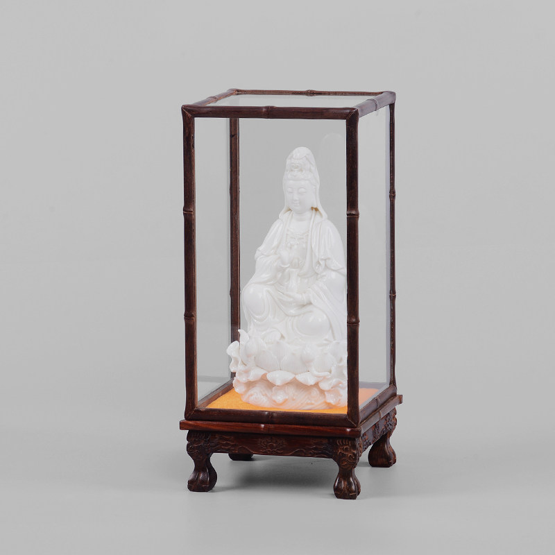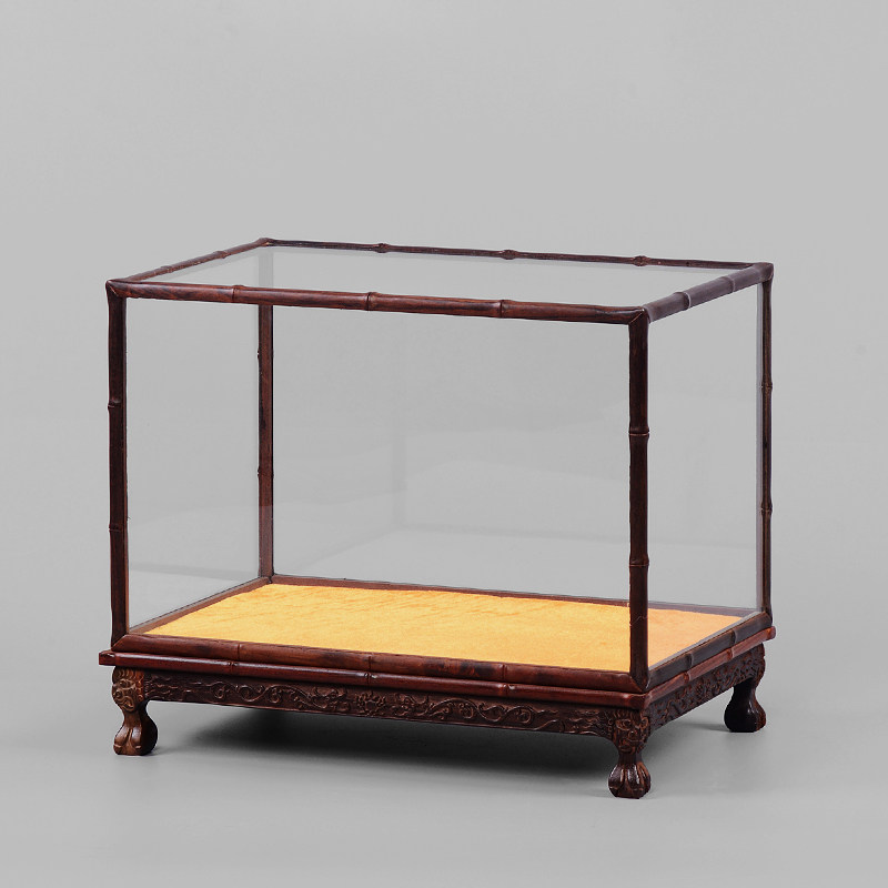 Lao Guo Da Red Sour Branch Treasure Cage Glass Cover Crafts Decoration Base Buddha Statue Wood Carving Display Dust Cover Custom