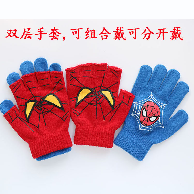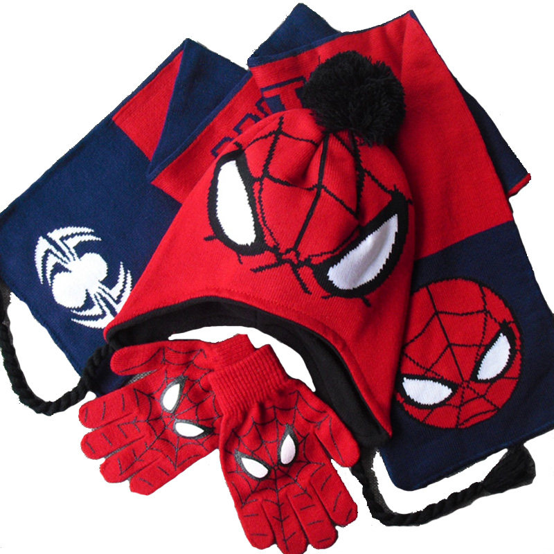 Kids Captain America Ultraman Superman Spider-Man Hat Scarf Gloves Boy Kids Fall/Winter Bib Present