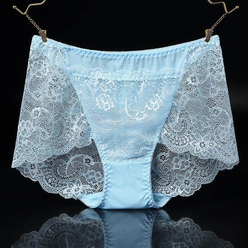 Japanese sexy incognito transparent lace panties women's perspective waist large size fat mm cotton crotch ultra-thin hot fun
