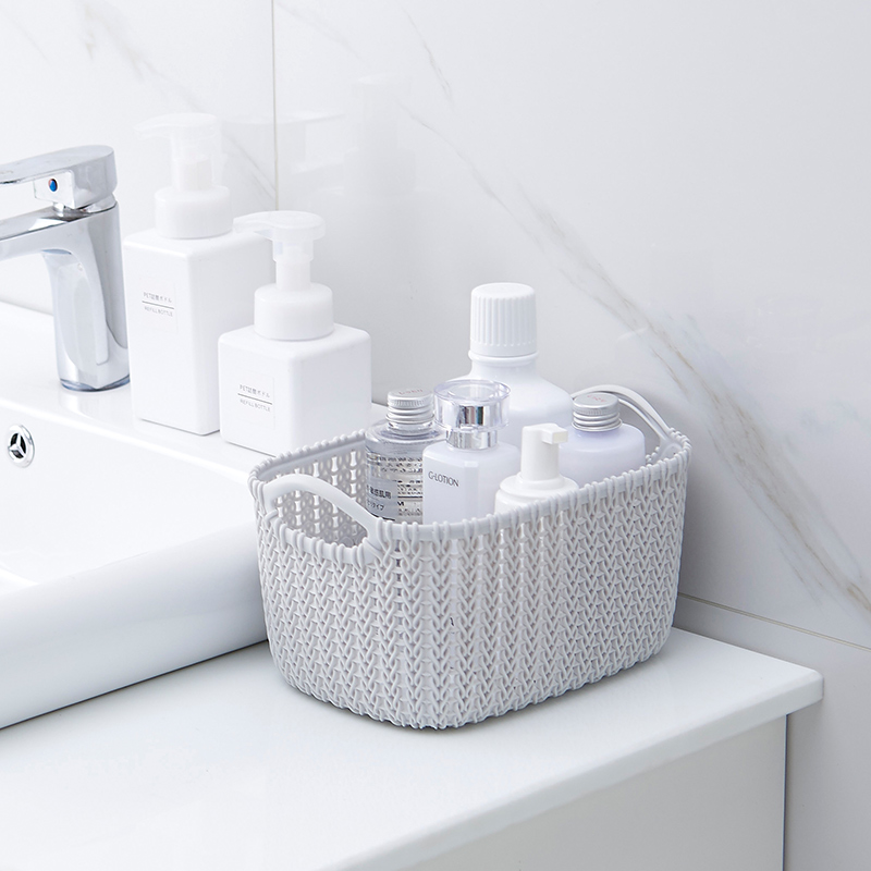 Whole cabinet storage basket plastic desktop storage basket bath kitchen snacks vegetables and fruits sundries cosmetics rattan woven box