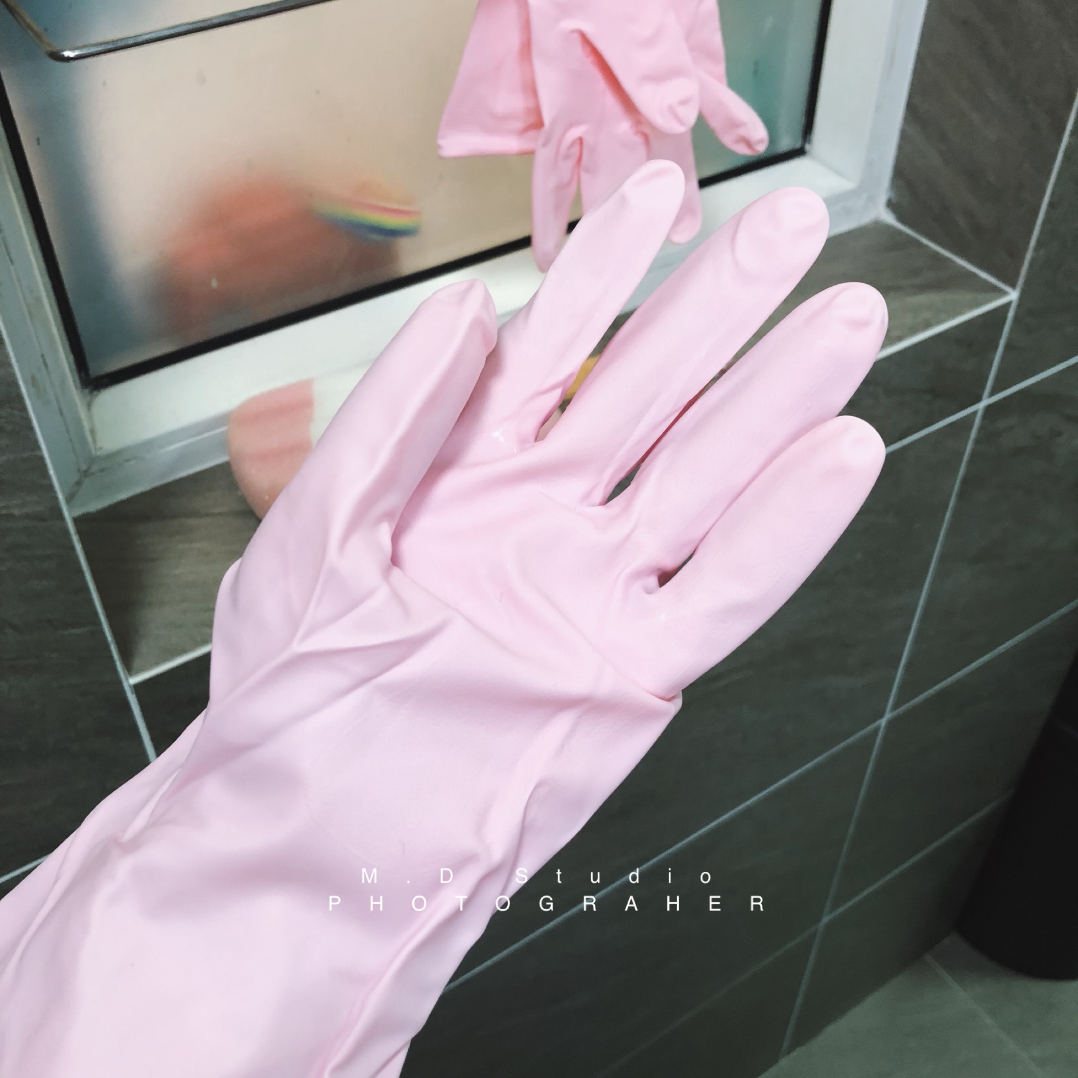 pink kitchen gloves
