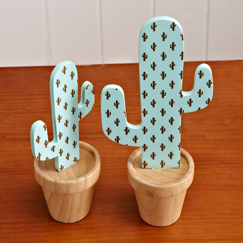 Cactus ins ornaments creative solid wood Nordic living room wine cabinet decorations furnishings children's room home accessories
