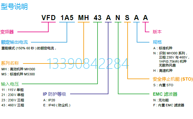 VFD4A8MS21ANSAA Delta MS300 Series 750W Delta Single Phase 220V Delta Inverter
