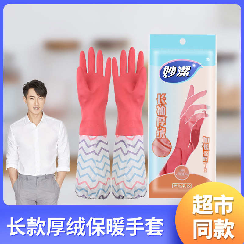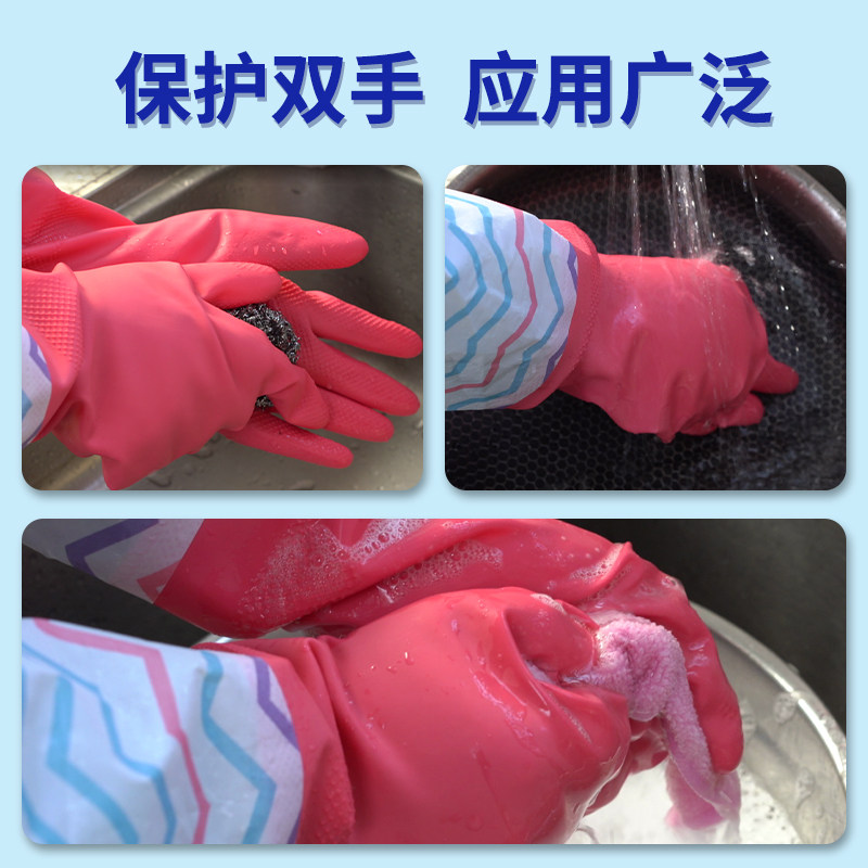 Inexplicity gush with long version warm rubber gloves female 2 double suede thickened domestic cleaning dishwashing all the time