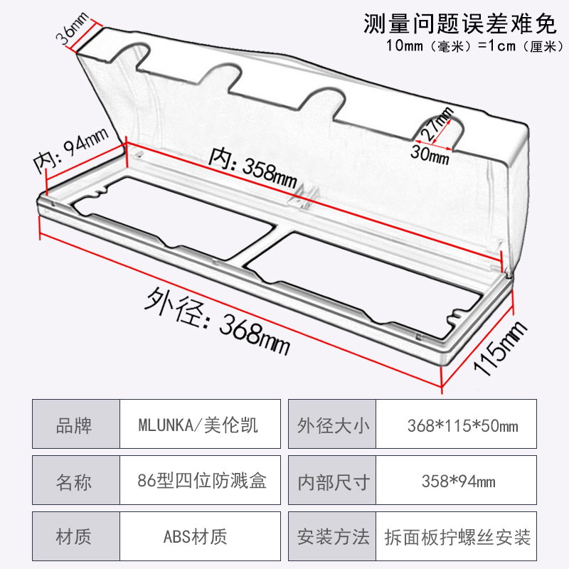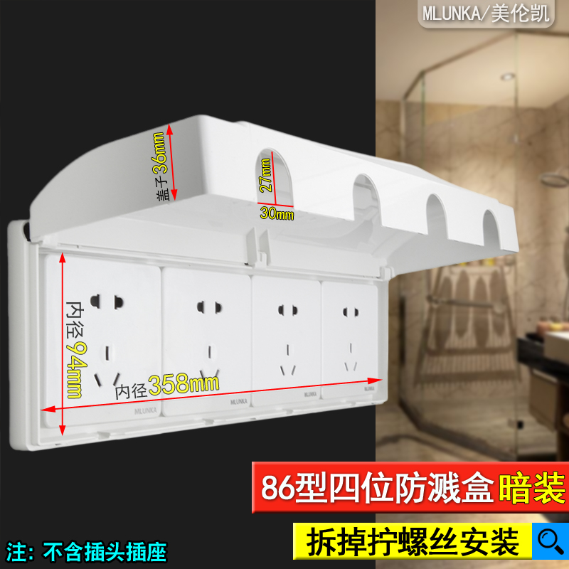 White 86 - bit parallel switch socket waterproof box protective cover toilet kitchen connector splash box