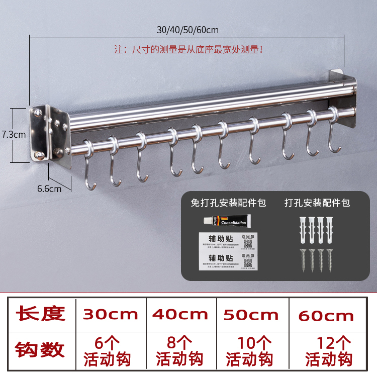 Kitchen 304 Stainless Steel Tool Holder Rack Wall-mounted Shovel Spoon Hook Cutter rack Home Free Punch Kitchen Knife Racks-Taobao