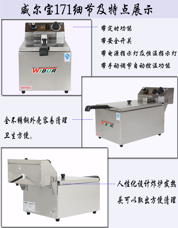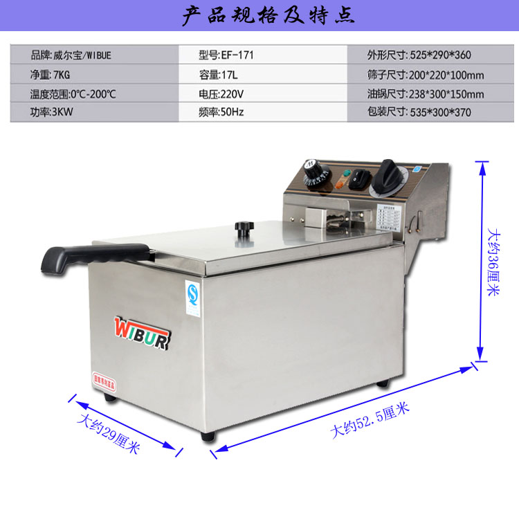 Wilbao EF-171 Single Cylinder Single Screen Electric Fryer stainless steel fryer Commercial timing increasing oil cylinder frying machine
