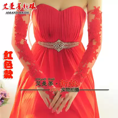 Bridal gloves Lace white wedding wedding gloves fingerless red spring and summer extended wedding gloves female autumn