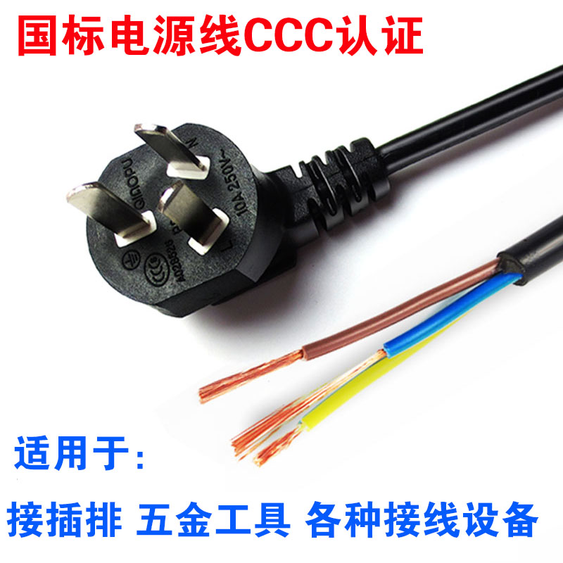 National standard power cord 10A three-hole pure copper 3-core 0 75 1 5 2 5 square 3 meters high-power cord with plug