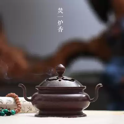 Merit Square handmade pure copper incense burner Household indoor incense aroma stove Binaural Xuande stove Home decoration ornaments
