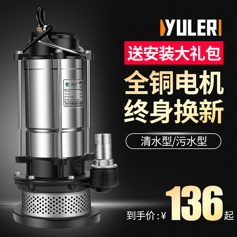 Yule 220v submersible pump Small high lift household self-priming large flow pump Agricultural septic tank sewage pump