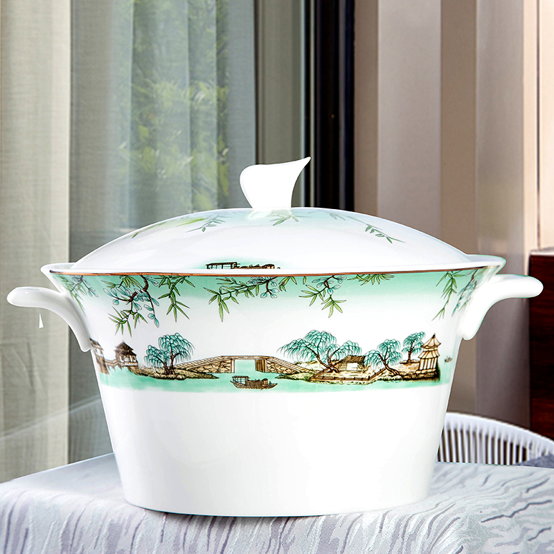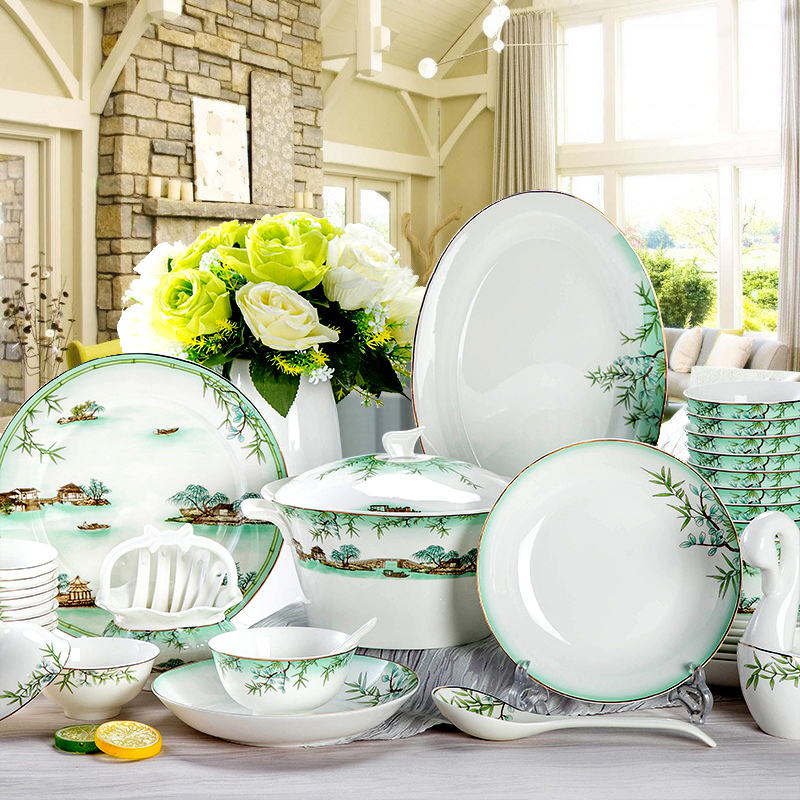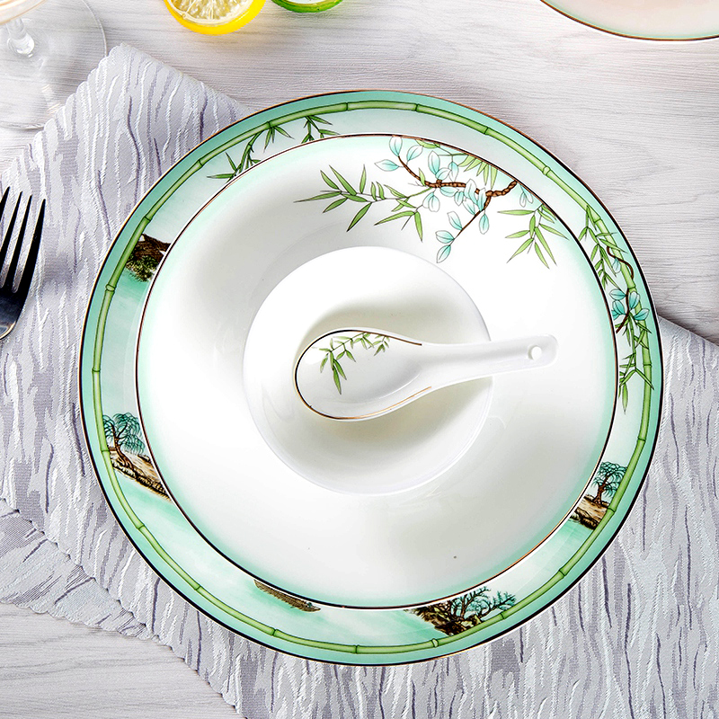 Gift tableware dishes set of high-end ceramic dishes combination Chinese tableware West Lake landscape bone porcelain simple tableware