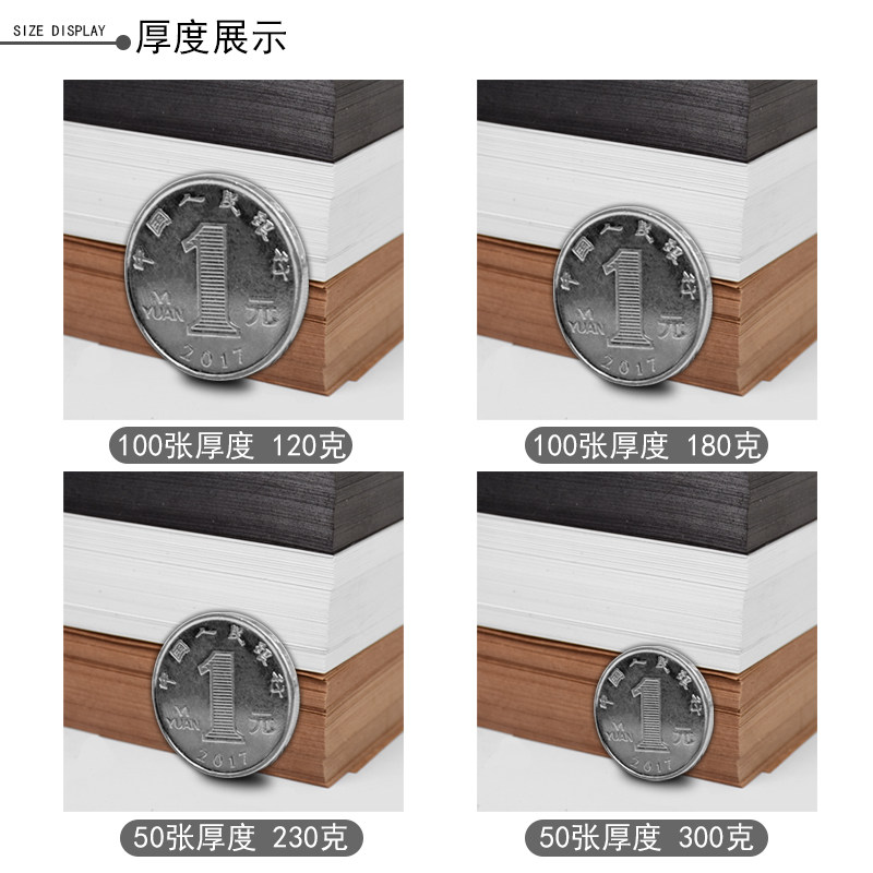A4 80 grams of 100 sheets of cowhide A4 120 grams of 100 sheets of cowhide A4 230 grams of 50 sheets of cowhide A4 300 grams of 50 sheets of cowhide A3 120 grams of 100 sheets of cowhide A4 230 grams of 50 sheets of cowhide A4 300 grams of 50 sheets of cowhide A3