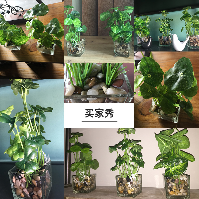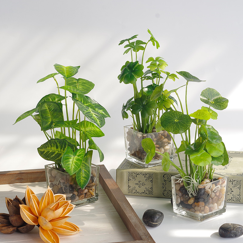 Simulation green plant flower suit simulation flower living room pendulum piece gold Ge four leaf grass plant false grass small potted bonsai