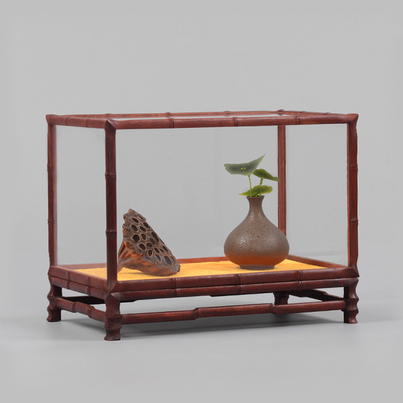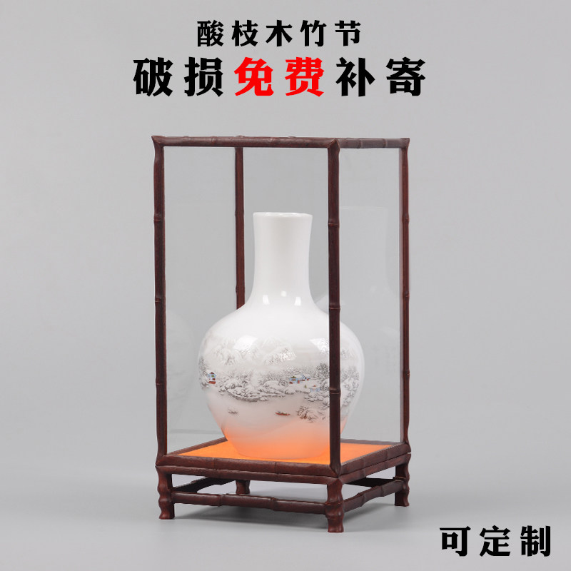 Red Wood Handicraft Wood Carved Glass Cover Son Buddha Antique Vase Base Transparent Display Dust Cover Pendulum