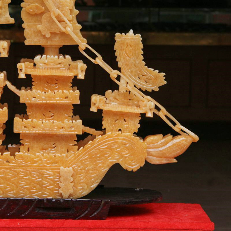 Natural jade 80 cm dragon boat craft gift decoration living room jade home smooth sailing rice topaz jewelry decoration