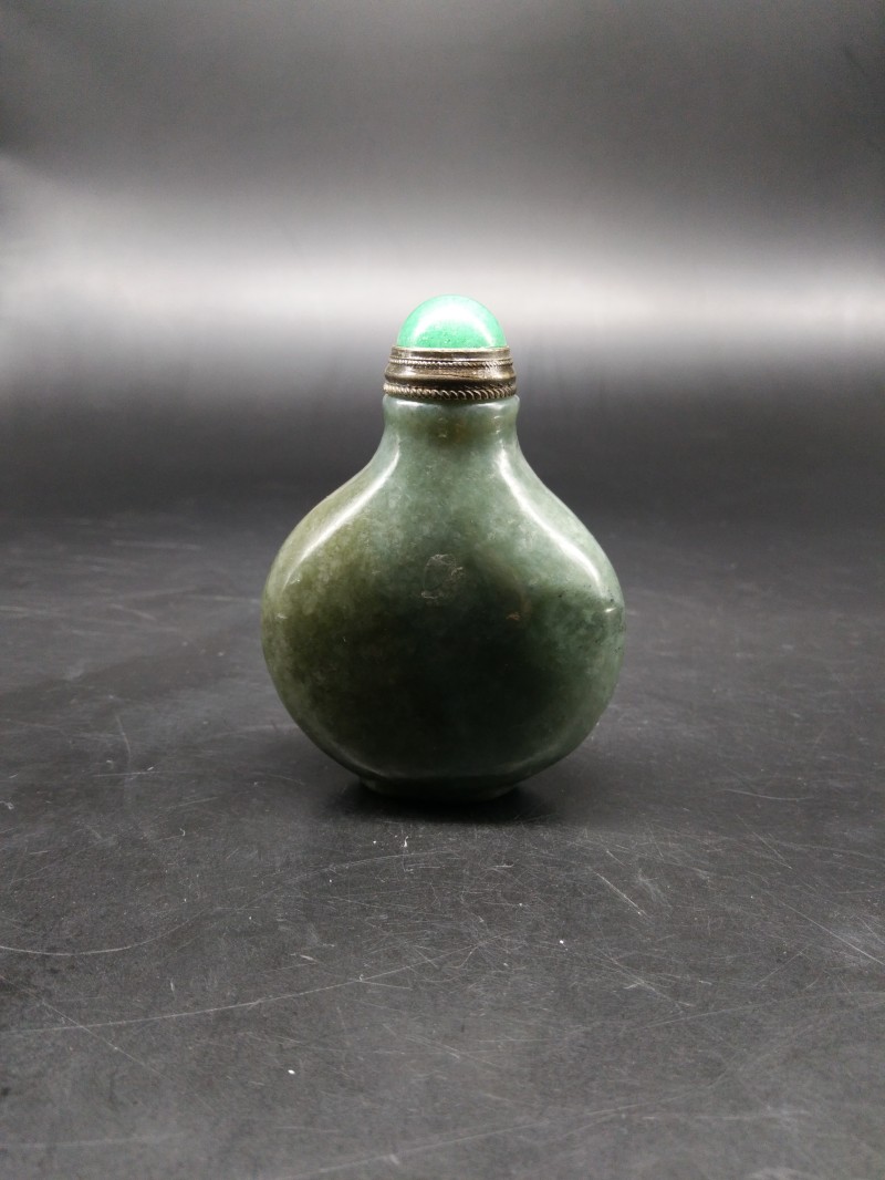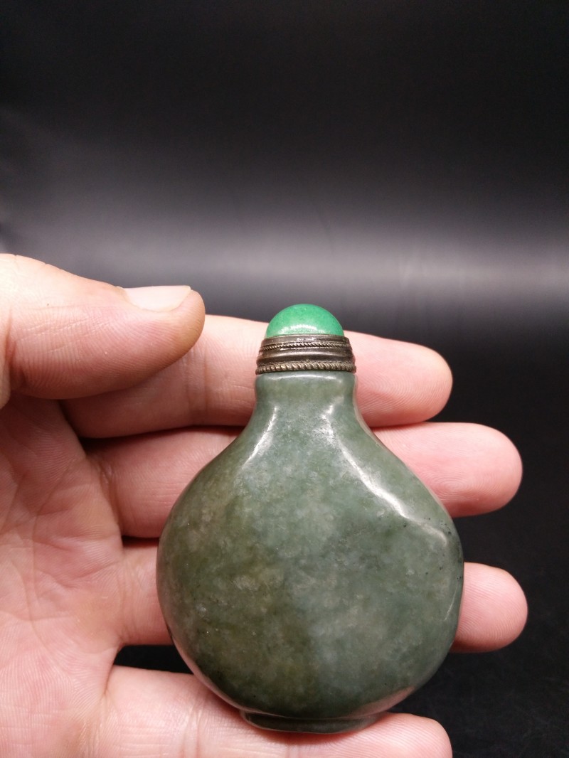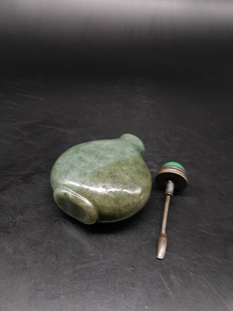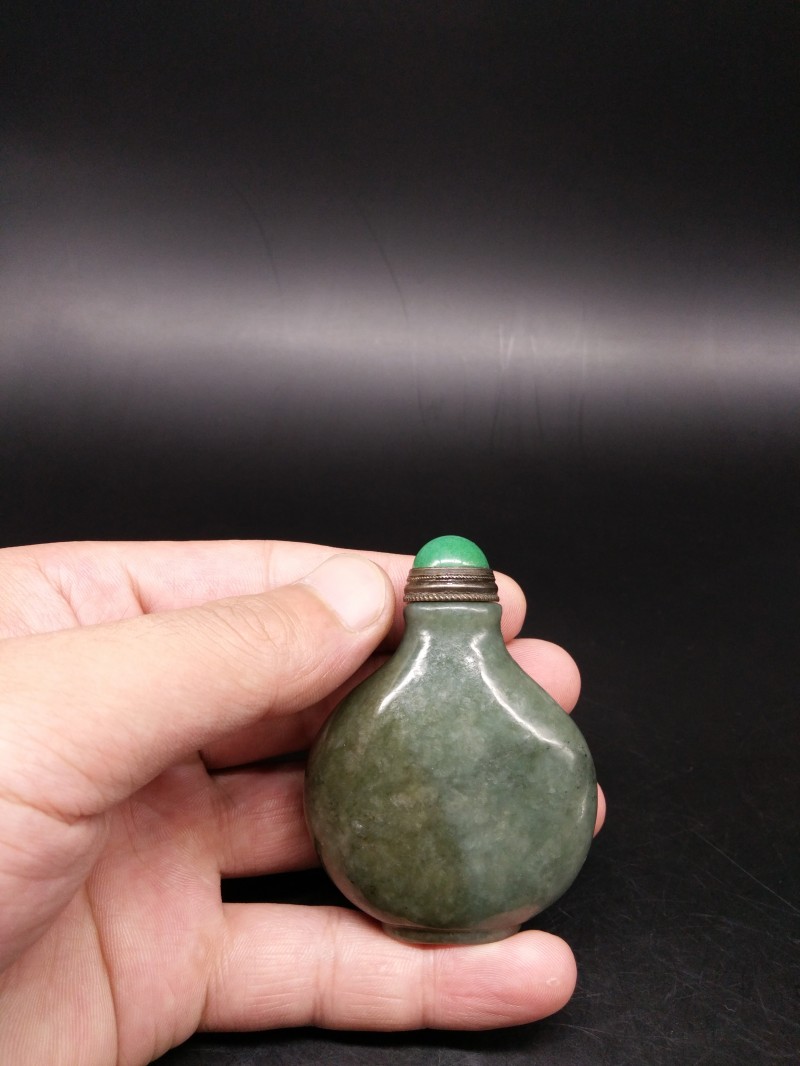 Hetian green jasper medium-sized thick and practical snuff bottle hand-polished antique play old-fashioned collection gift props