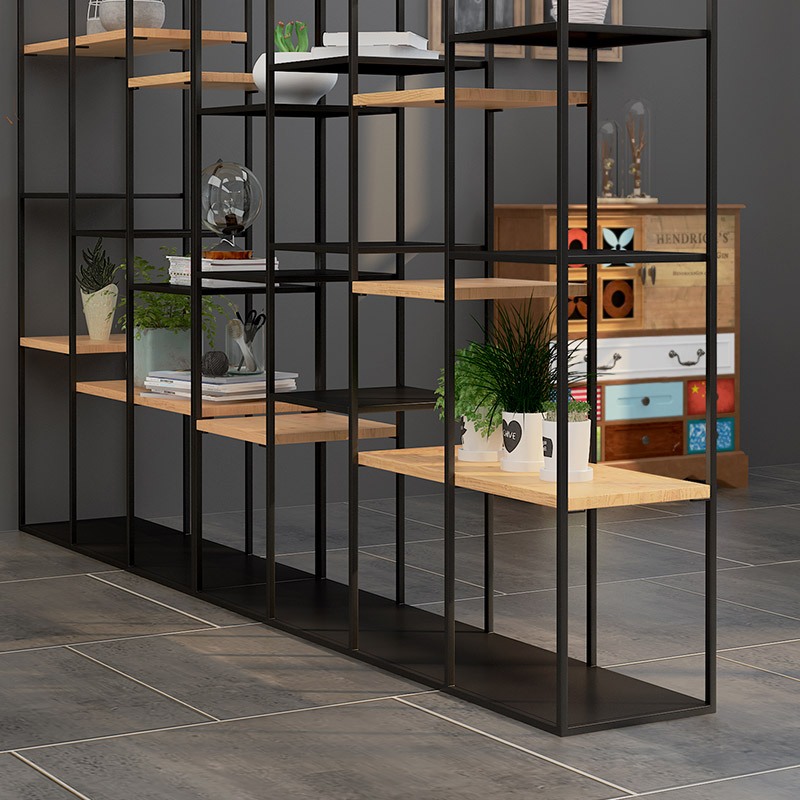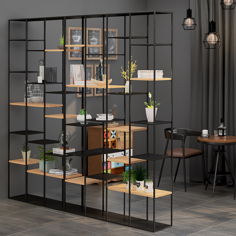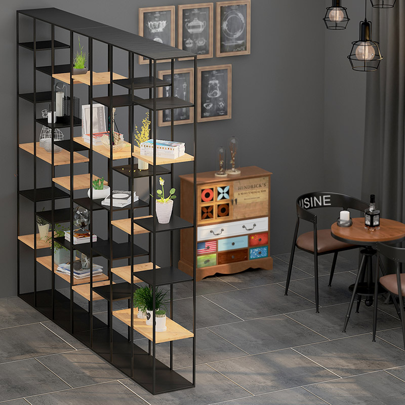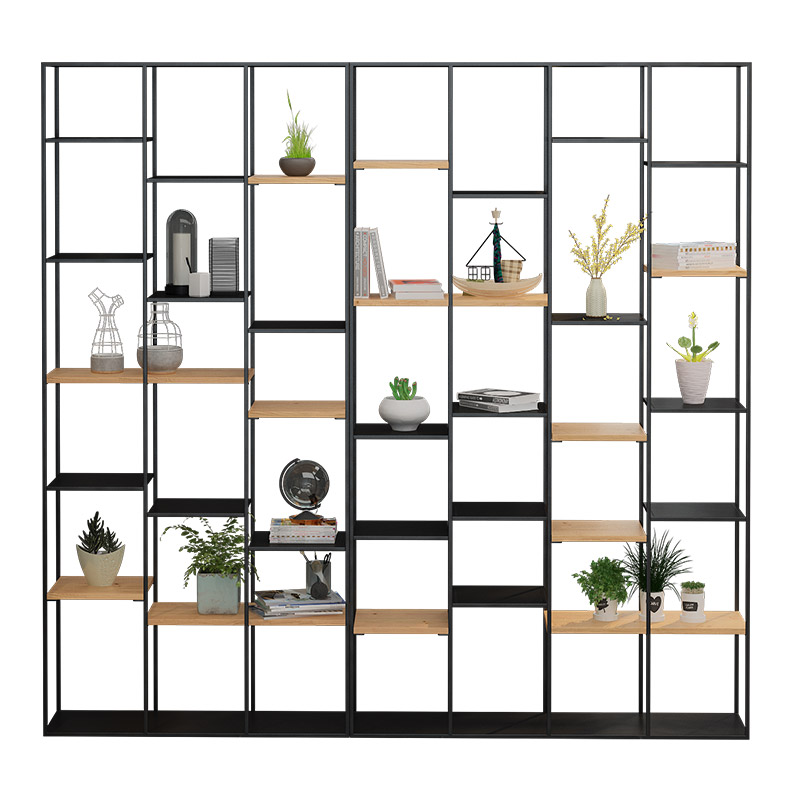 Ruyi square industrial wind Wrought iron shelf Office screen partition display stand Creative entrance solid wood lattice