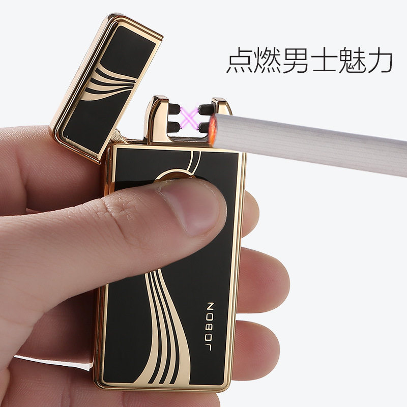 jobon mid-state windproof lighter charge ultra-thin creative USB dual arc lighter metal electronic cigarette lighter