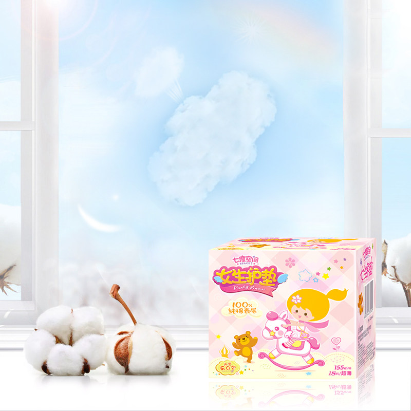 Seven degrees of space pad girl girl pure cotton breathable fragrance-free bacteriostatic ultra-thin 5 boxes of combination 90 pieces