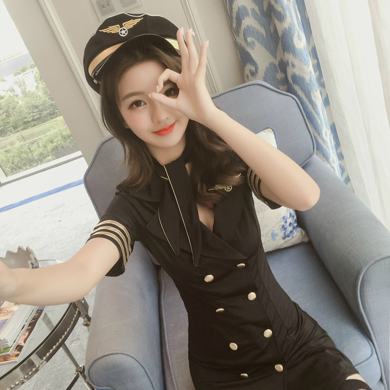 Sexy stewardess uniform temptation sexy lingerie small chest three-point tease passion suit bed flirting